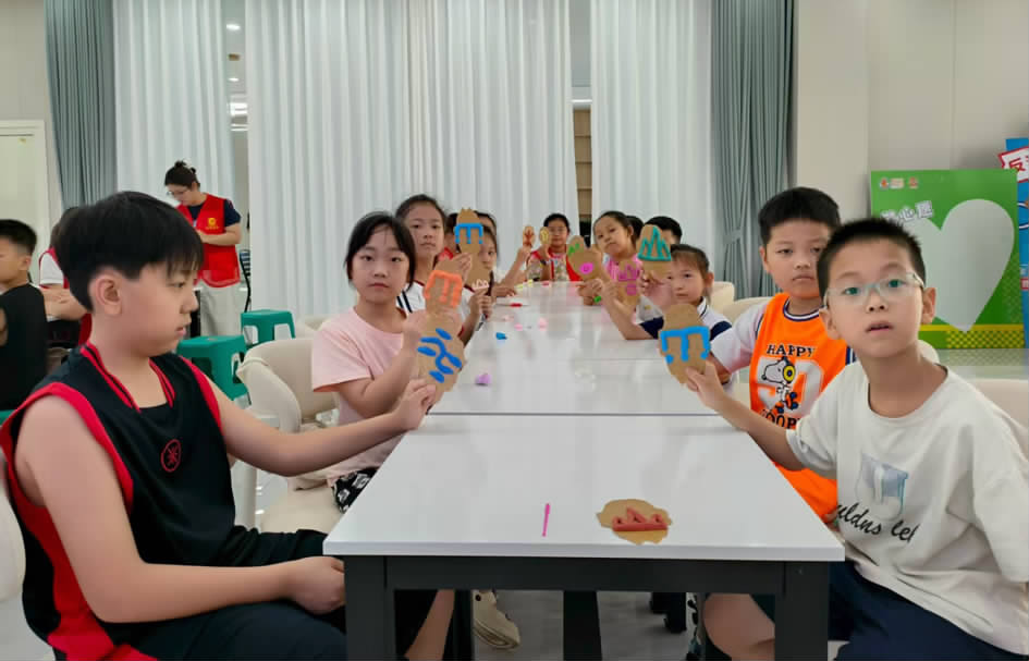 在彩泥制作环节,志愿者耐心示范揉捏、塑形等技巧,指导孩子们将“雨”“水”“木”等甲骨文字立体呈现。孩子们发挥天马行空的想象力,有的为文字添加彩色纹饰,有的将多个字组合成故事场景。活动现场欢声不断,孩子们在动手实践中不仅锻炼了空间思维和团队协作能力,更深刻体会到古人的智慧。