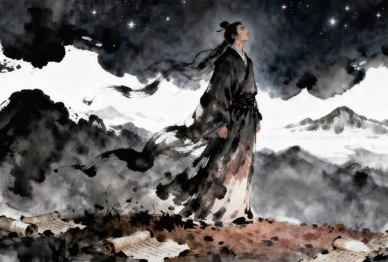 吟诵完,他回头看我,挥手像是示意我止步。我正惶恐疑惑,仿佛脚下误踩了青苔,一滑摔倒,就此惊醒。枕上默默回忆他所吟诵的诗,一字不差。听着窗外风声飕飕,好像吟诗的韵律还在耳边。我把这些记在心里,觉得这事实在难测。